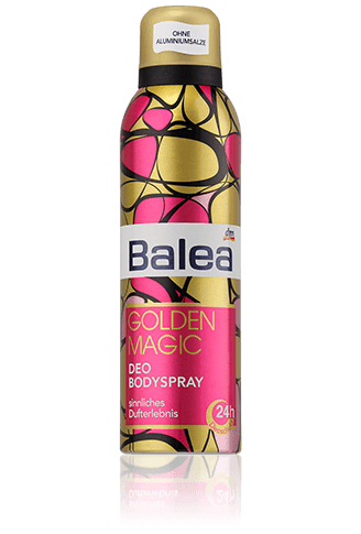 Das Balea Deo-Sortiment wird stetig erweitert. Mit unter den Neuen zählt auch das Aluminiumsalzfreie Deospray "Golden Magic".