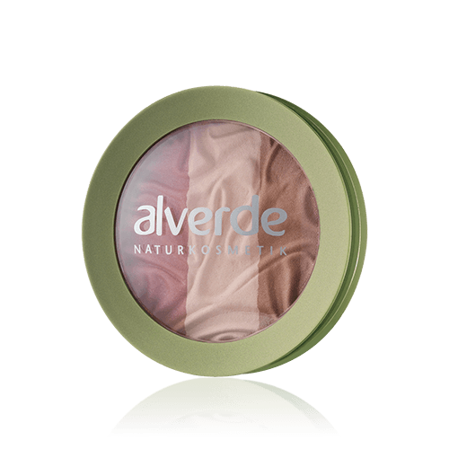 Der Rouge besteht aus drei naturverbundenen Farben, ein zartes Rosé, ein leichter Créme-Ton und ein helleres braun, das ineinander verblendet, ein zartes und feines Rosé-Rouge ergibt, indem zudem ein minimaler Bronzer enthalten ist und mit Schimmerpartikeln erweitert wurde.