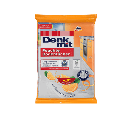 Die Bodenreinigung kann ziemlich nervig sein. Und für eine kleine Fläche gleich den Eimer fertig machen? Nicht mit mir. Deshalb verwende ich schon seit Ewigkeiten Feuchte Bodenwischtücher unterschiedlicher Marken. Ich habe mich daher auch an die von Denk mit mit frischem Orangen-Duft gewagt.