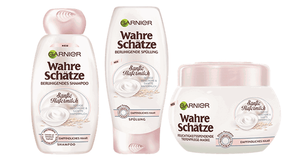Garnier Wahre Schätze Sanfte Hafermilch & Reiscreme Shampoo, Spülung und Tiefenpflege-Maske