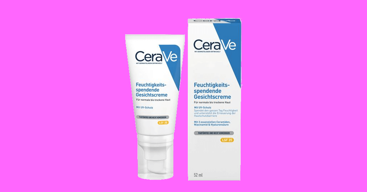 Klicke hier, um "CeraVe Feuchtigkeitsspendende Gesichtscreme SPF25" auf Amazon.de zu suchen.Mit deinem Klick auf einen unserer Partnerlinks erhält gooloo.de eine kleine Provision für jeden erfolgreichen Verkauf. Für dich entstehen dadurch keine Mehrkosten. Durch diese Einnahmen betreiben wir z.B. unser Angebot und kaufen Testprodukte ein.