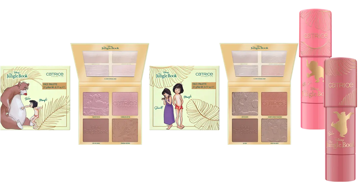 The Power of Jungle! Die CATRICE Eyeshadow Paletten inspiriert von Disney The Jungle Book verführen mit seidenmatten Farbtönen und Metallic-Nuancen. Die besten Freunde Mowgli, Baloo, Hathi Jr. und Bagheera sorgen für intensive Augenblicke und haben die drei unterschiedlichen Paletten inspiriert. 15 farblich aufeinander abgestimmte Shades sind in jeder Situation ein treuer Begleiter und kreieren individuelle Finishes. Die hochpigmentierte Textur lässt sich ohne Verschmieren auftragen und sorgt langanhaltend für Wow-Momente. Ein absolutes Highlight in jeder Beauty-Case: Das super-cute Packaging in Pastelltönen inspiriert von The Jungle Book-Charakteren.