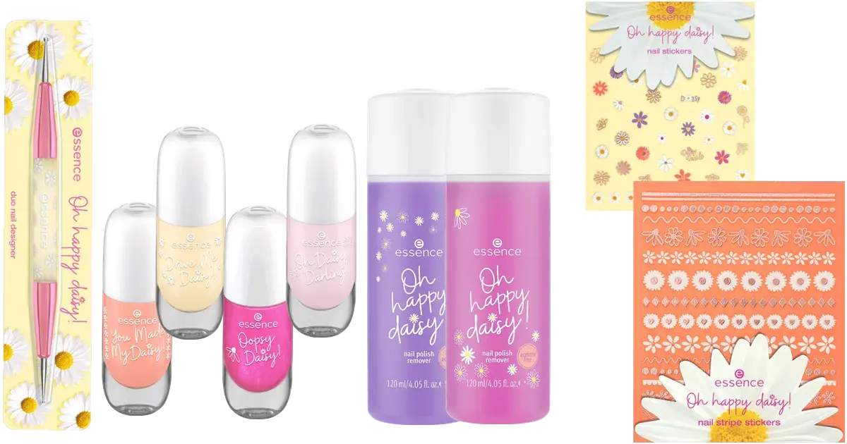 Du liebst mich, du liebst mich nicht…? Ganz egal, denn dieser Trend sorgt für wahre Frühlingsgefühle: Daisy Nails sind die Hingucker der Saison und sorgen für hübsche Gänseblümchen und frische Farben auf den Nägeln. Und dabei kommen wir in so richtig gute Stimmung, denn Gänseblümchen stehen für unbeschwerte Sommertage und Blumenkränze basteln mit den best friends. Die neue essence Oh happy daisy! Trend Edition bietet ab April alles, was man für die floralen Nails braucht.