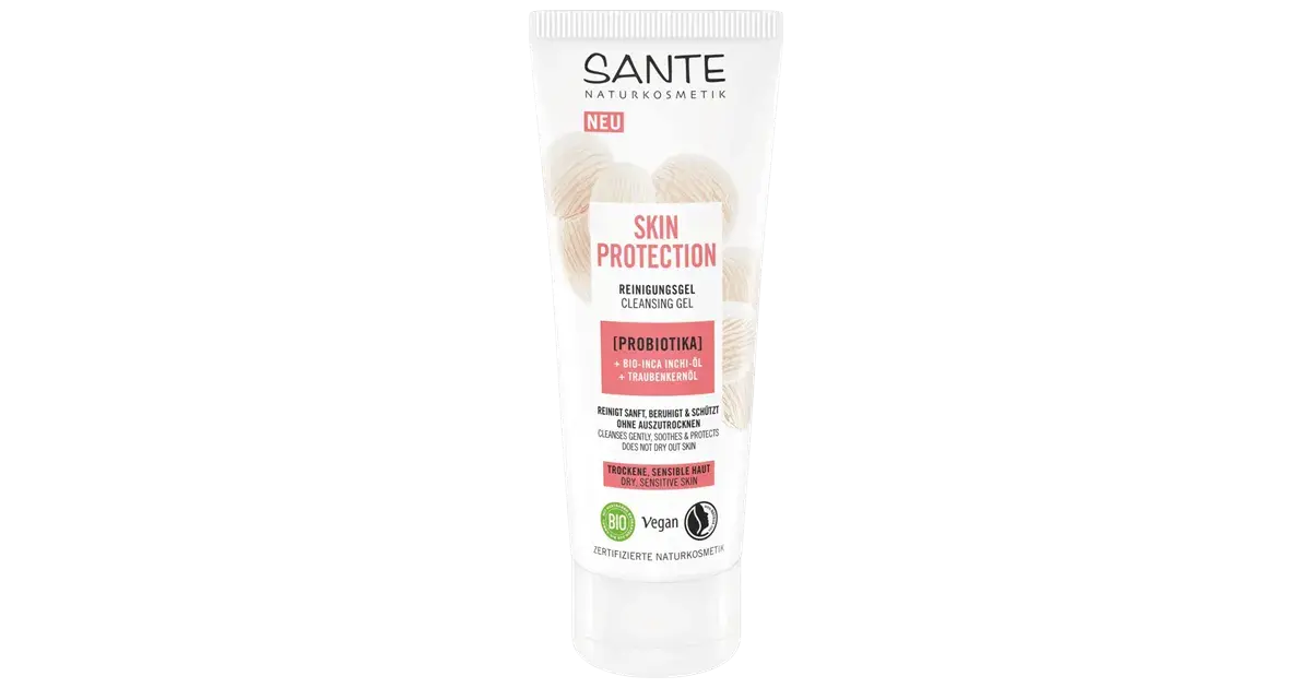 Das Reinigungsgel ist deutlich sanfter formuliert als alte Sante-Formeln und enthält starke Pflegestoffe. So sind u.a. Probiotika (pflanzlich gewonnen), Fermente aus Lactococcus (Postbiotika), Inkaöl, Milchsäure und das Aminosäure-Derivat PCA Ethyl Cocoyl Arginate enthalten.