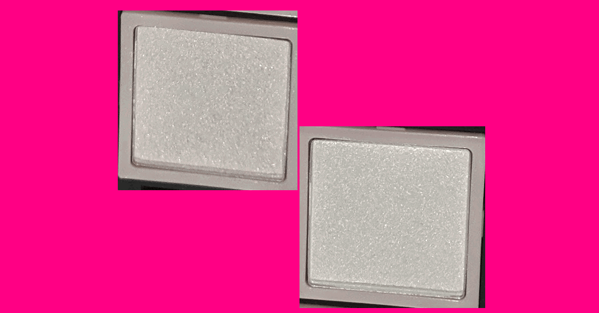 Aber oh boy, habe ich mich geirrt. Dieser kleine, runde, unscheinbare Highlighter hat es mehr als faustdick hinter den Ohren - oder der Verpackung. Selbst noch in der geöffneten Verpackung sieht das Puder sehr, sehr unscheinbar aus, aber der Highlighter ist unfassbar vollgepackt mit Duochrome- und Schimmerpigmenten. In der Verpackung würde man, so wie ich, nie davon ausgehen, wie krass dieser Highlighter wirklich ist.