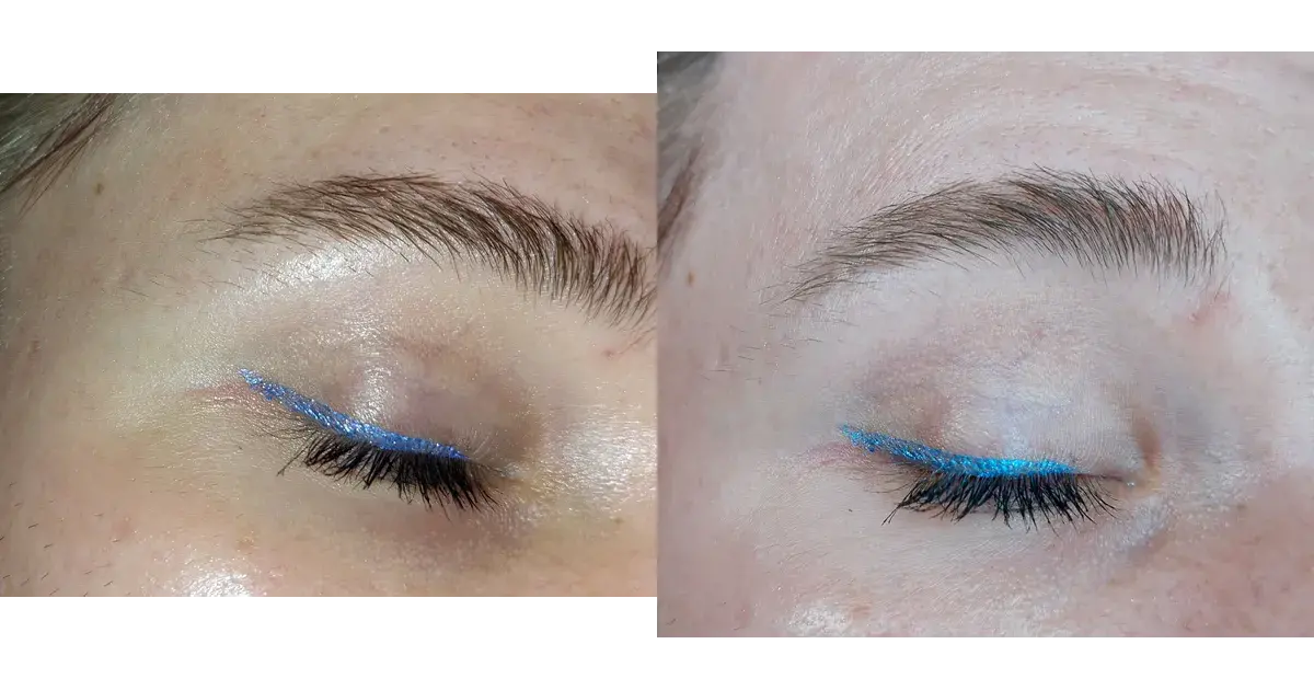 Für eine durchgehende Linie und einen durchgehenden Effekt waren jedoch auch bei dunklen Farben oder auf nackter Haut mindestens zwei Abläufe notwendig. Die Deckkraft reicht in einer Schicht nicht ganz aus, um die Haut wirklich vollständig abzudecken. Während der Eyeliner noch feucht war, habe ich daher schnell noch eine zweite Schicht darüber aufgetragen.